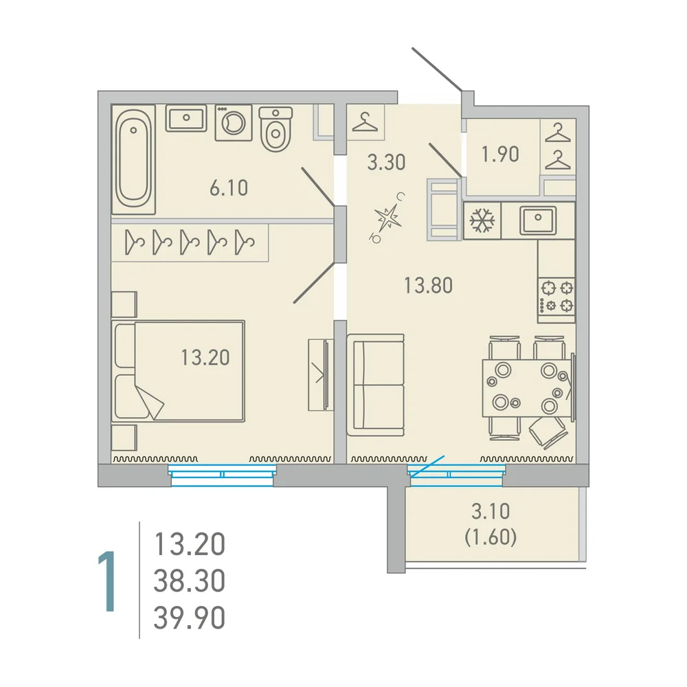 39.9 м2