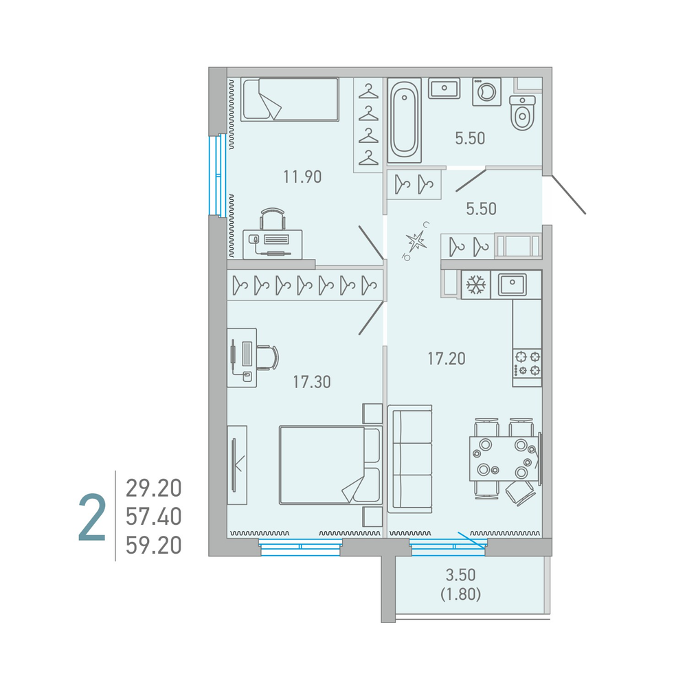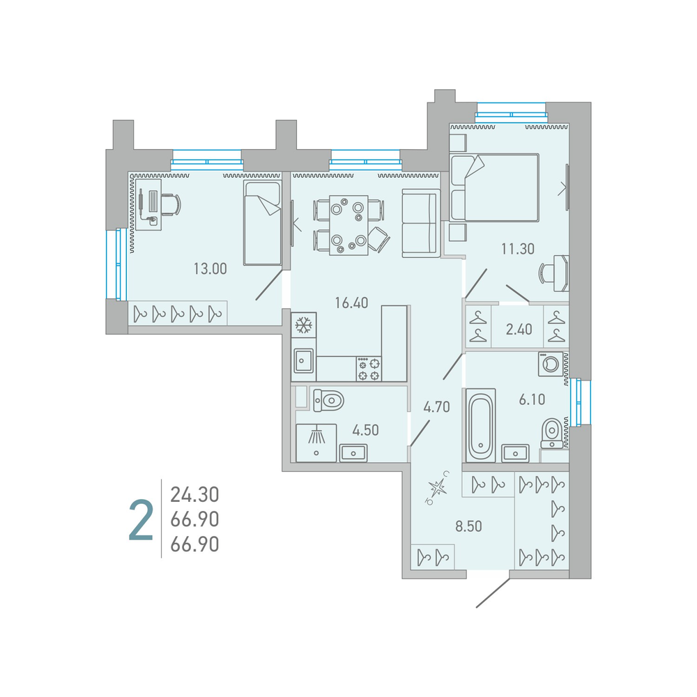 2-комнатная 64.3 м2