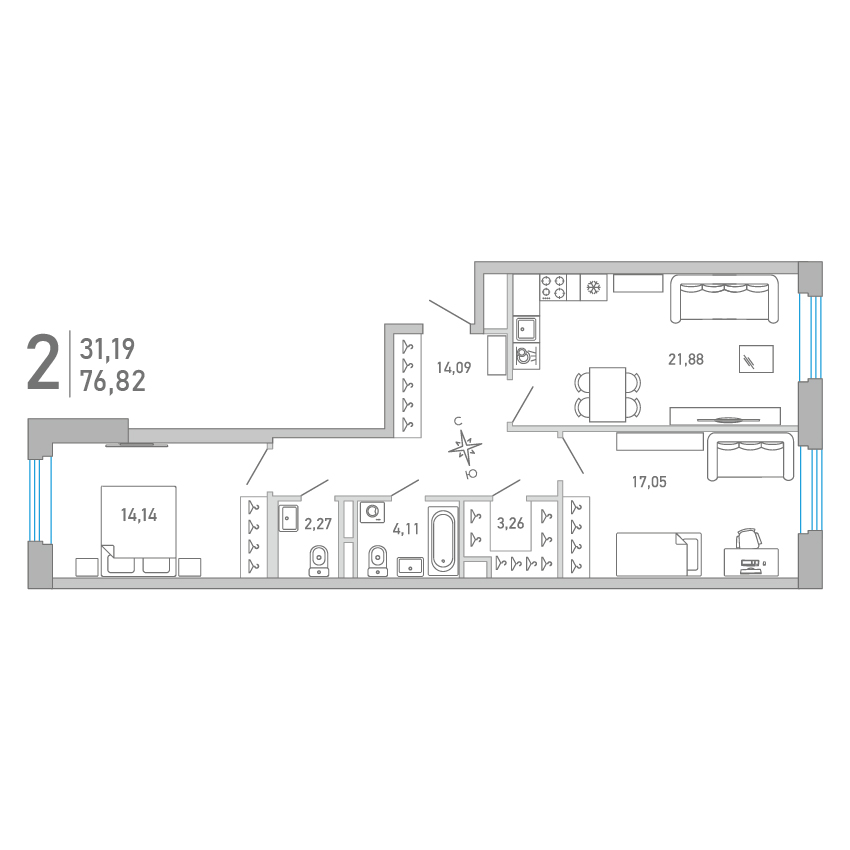 77.05 м2