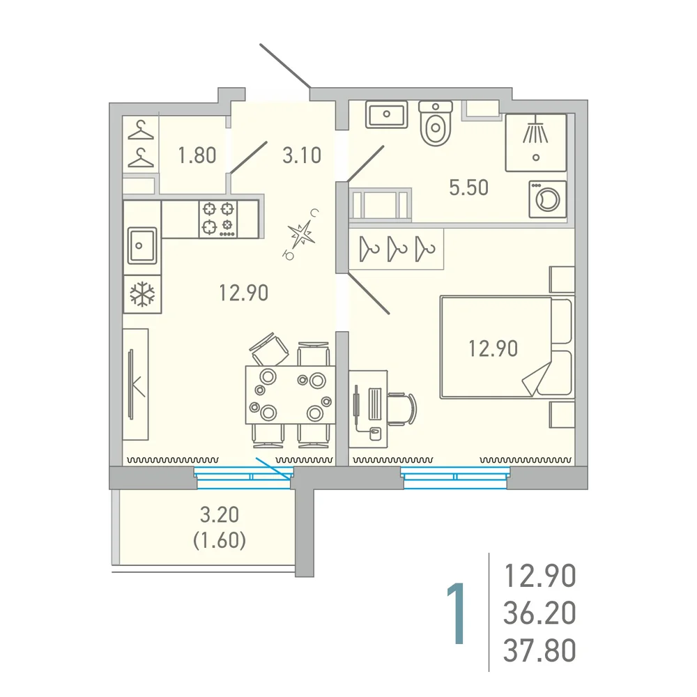 1-комнатная 36.1 м2