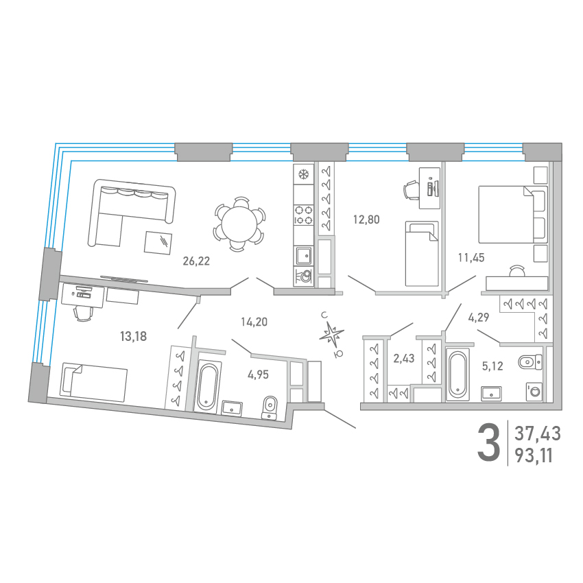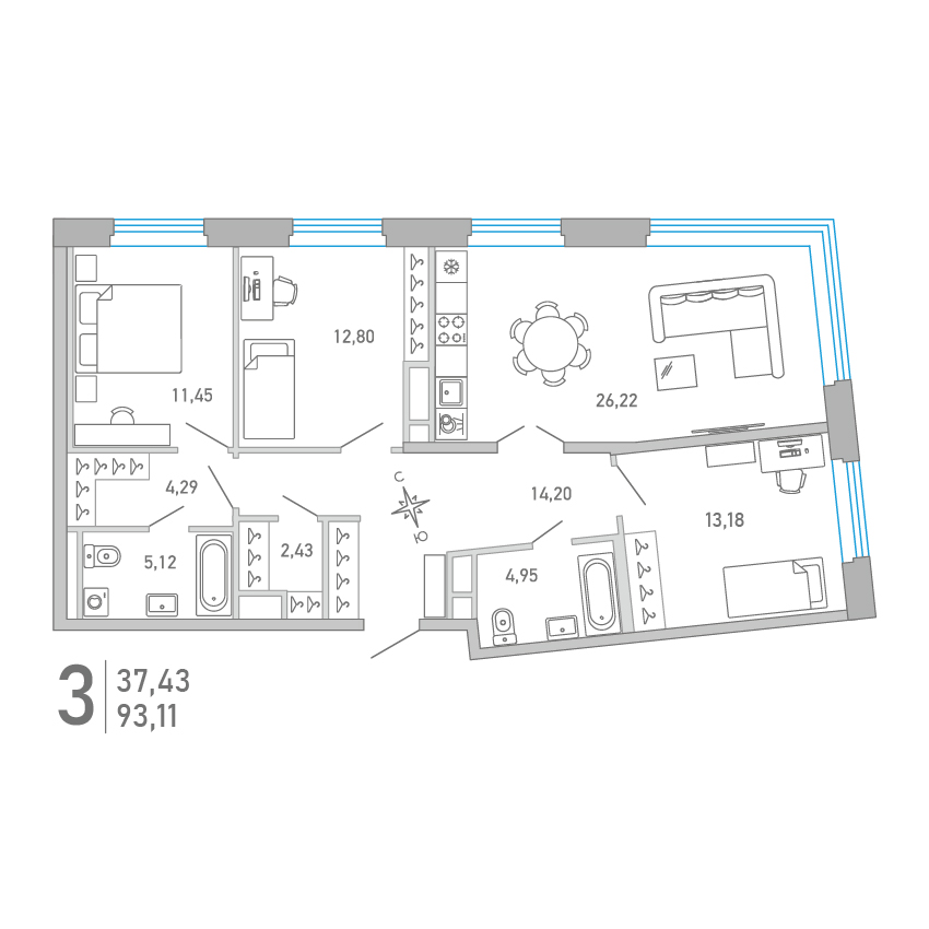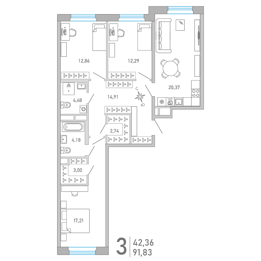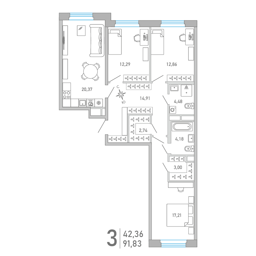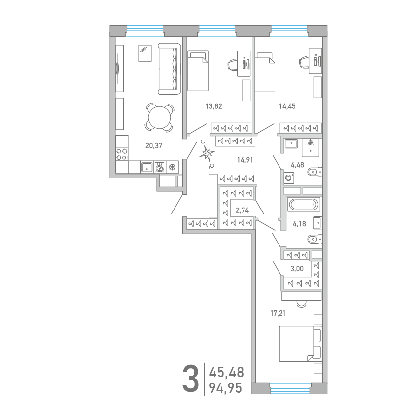 3-комнатная