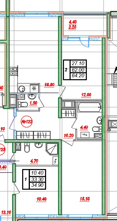 2-комнатная 64.3 м
